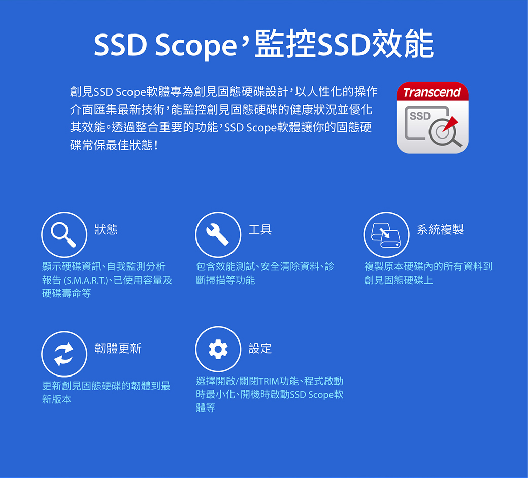 ★ 免費提供SSD Scope軟體,監控SSD效能