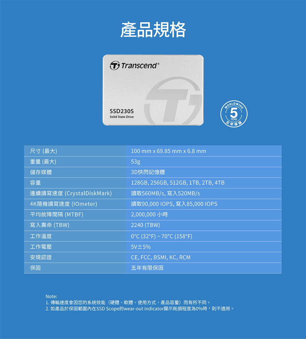 Transcend 創見 SATA III 固態硬碟 (SSD)--230S